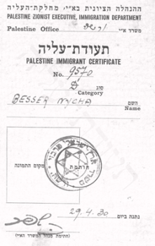 The rise of the Nazi party in Germany, significantly increased Jewish demand for immigration into the British Mandate of Palestine. Yichiel Besser was one of those who wished to leave. As a result, he withdrew from the Hasidic community and even went to a Misngdim meeting place to learn Hebrew. Pinchas Grofman was his teacher.